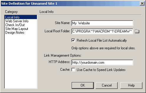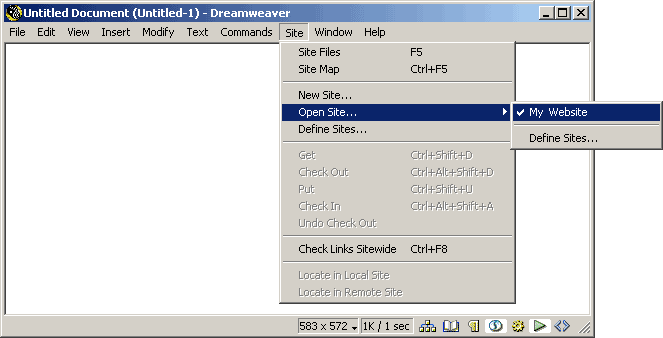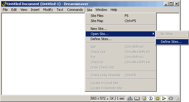 1. To setup up Macromedia Dreamweaver to use with your Point Graphics Pty Ltd account, start Dreamweaver and click on