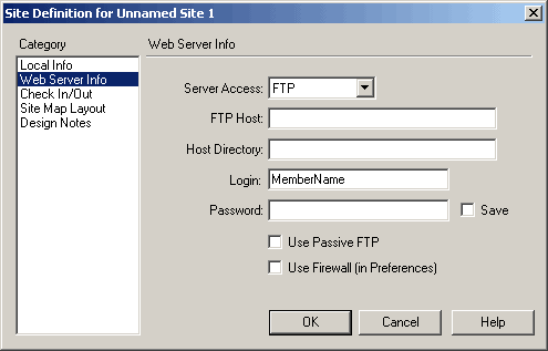 3. Move down to the next category; Web Server Info. Select FTP from the