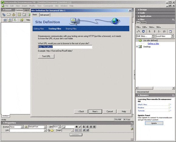 5. Dreamweaver will need to know the host of the test machine. Usually this is http://localhost/ but you may have changed it to another port or hostname. Once you have done this click the next button.
