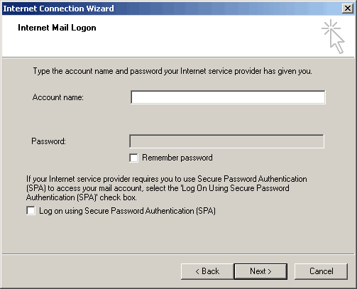 mail.pointgraphics.com.au in the incoming mail server field. Enter your ISP's smtp server in the outgoing mail server field and click next.