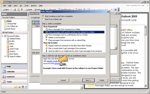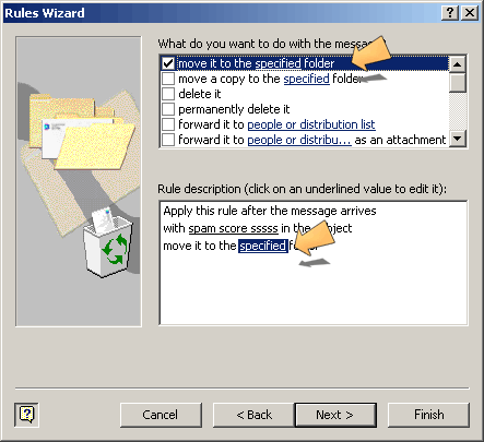 If you selected 'Move it to the specified folder', click on 'specified'.