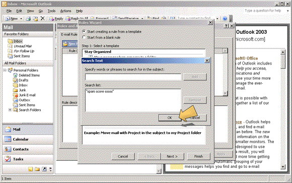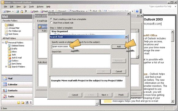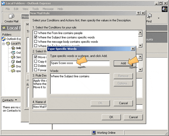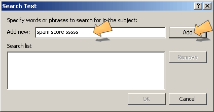 Refer to the above Spam scoring table.) Click the 'Add' button