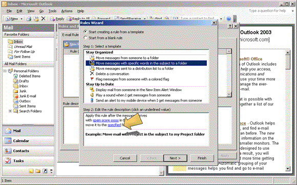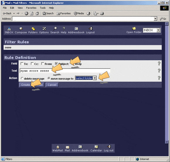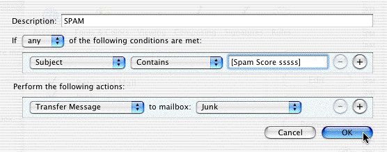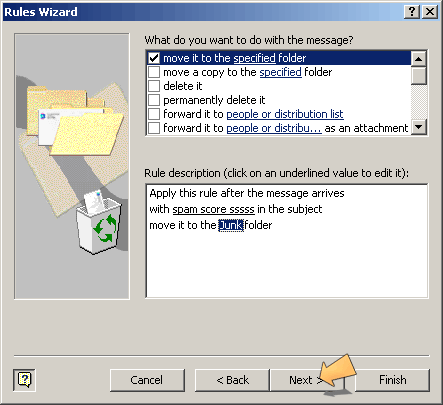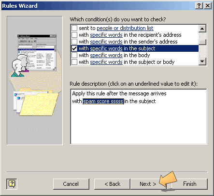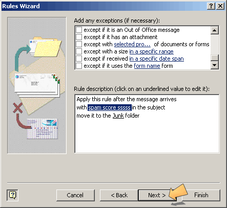 Click on 'Subject contains specific words' and enter 'Spam Score sssss'