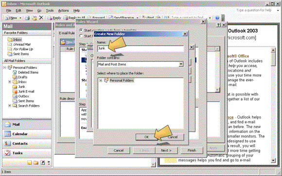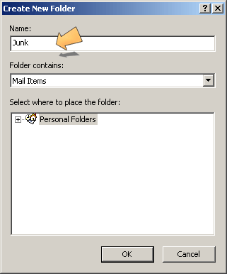 Enter a name for your email folder in the 'Name:' field and click 'OK'.