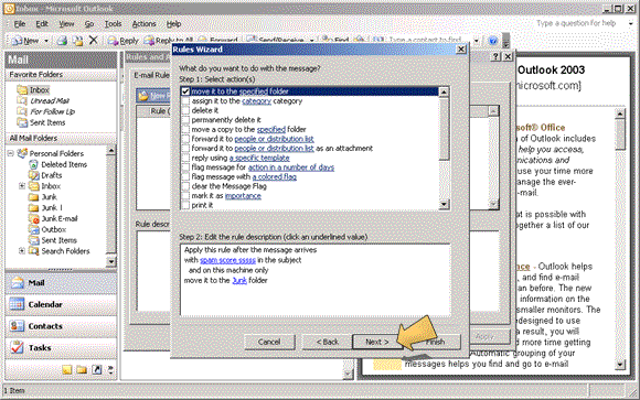 Make sure that the action is set to 'Transfer Message' to the mailbox 'Junk',