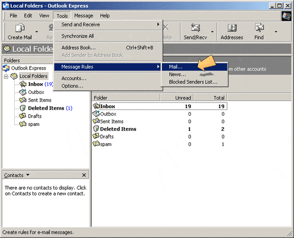 Open Outlook Express and go to Tools --> Message Rules --> Mail.