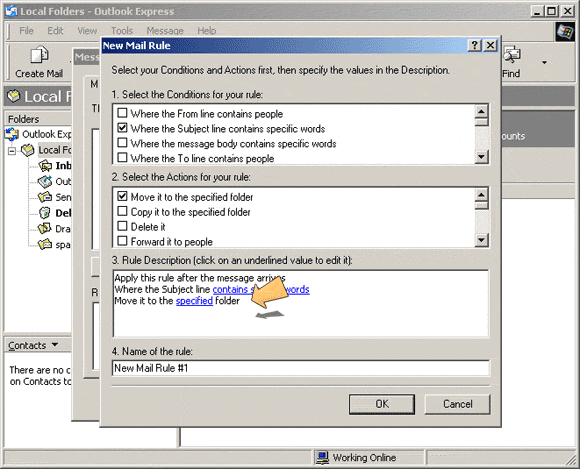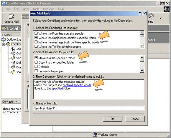 Your rules will now be effective the next time you download your email in Outlook Express.
