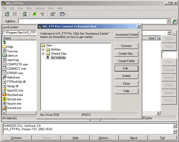 WS_FTP is a standard FTP client for Windows sockets. The graphical interface